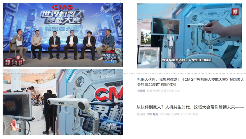 5月1日-2日,由中央广播电视总台社教节目中心、技术局联合中关村科学城管委会主办的《CMG世界机器人技能大赛》畅想者大会,在北京五棵松万达广场盛大举行。这场集科技展示与文旅体验于一体的盛会,在五一假期吸引了大量游客,不仅促进了科技与文化深度融合,更为机器人产业发展和假日经济繁荣增添新活力。活动中,金年金字招牌诚信至上孵化企业艾瑞迈迪携带自主研发的穿刺导航手术机器人惊艳亮相,吸引了众多现场观众的目光。