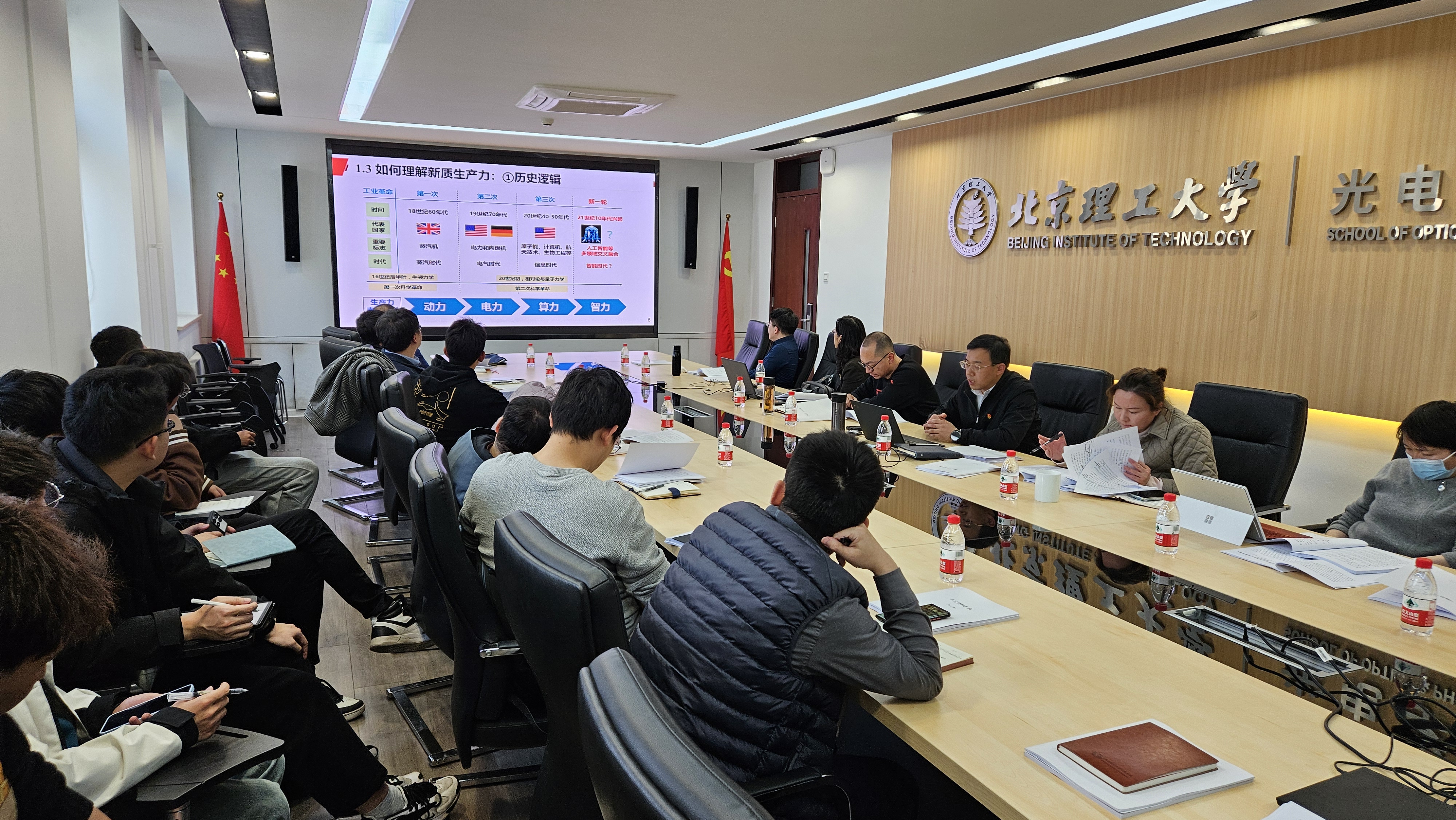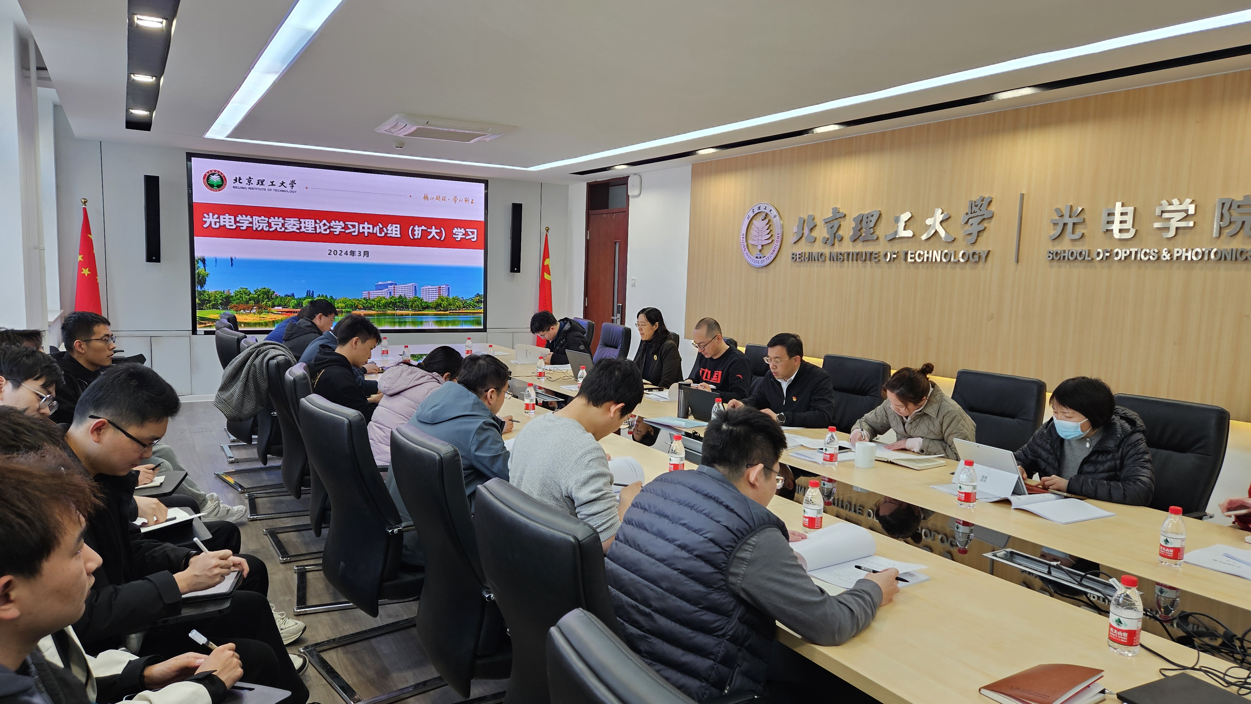 3月20日下午,金年金字招牌诚信至上在中关村校区光电楼217会议室开展党委理论学习中心组(扩大)学习,深入学习习近平总书记在全国两会期间重要讲话精神和全国两会精神,认真学习习近平总书记关于发展新质生产力、推动高质量发展的重要论述,结合学院事业发展实际,畅通教育、科技、人才良性循环,推动“双一流”高质量建设开展学习研讨。