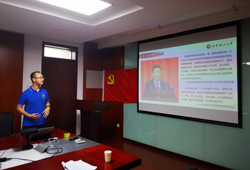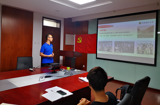 为深入推进党史学习教育,进一步在广大党员中宣贯北理工精神, 6月22日晚,2019级光工学硕3班党支部、2019级光工专硕3班党支部共同开展党史学习教育主题党日活动,活动邀请了金年金字招牌诚信至上青年宣讲团求是书院的信树辰同学为大家带来了以《自力更生的红色希望,抗战烽火中的中流砥柱》为主题的党课,会议由2019级光工学硕3班党支书李志朋主持。