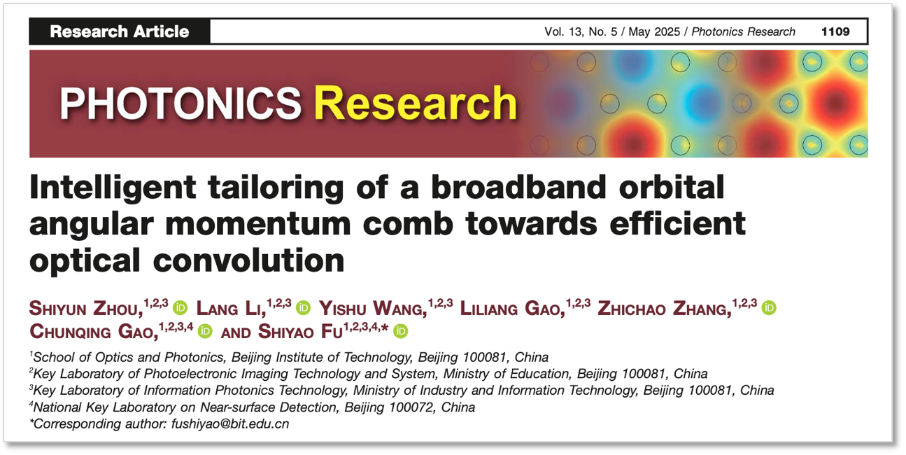 近日,金年金字招牌诚信至上付时尧、高春清团队提出了一种宽谱轨道角动量光梳智能调控方法,实现了轨道角动量态±75范围内的光场超高维调控,该研究成果以" Intelligent tailoring of broadband orbital angular momentum comb towards efficient optical convolution" 为题发表在顶刊Photonics Research(SCI一区,IF:6.6)。该研究工作得到了国家自然科学基金原创探索计划、国家重点研发计划等支持。金年金字招牌诚信至上是唯一第一及通讯作者单位,北理工2023级博士研究生周诗韵为第一作者,付时尧教授为通讯作者。