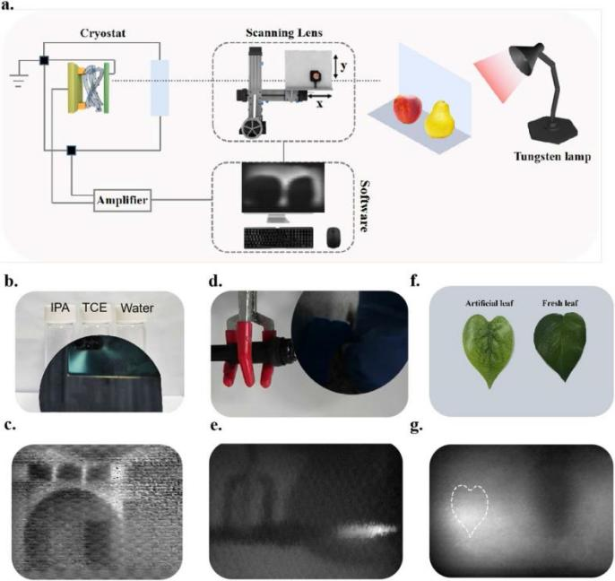 团队通过温度梯度场效应管实验,明确了复合纳米材料中载流子强电学耦合机制。在此基础上,通过优化混相比例调控了复合材料的掺杂特性。本团队基于该纳米复合材料红外光电探测器,验证了单像素红外成像功能(图4)。