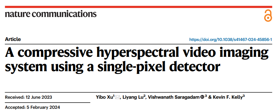 原文信息:Xu, Y., Lu, L., Saragadam, V. et al. A compressive hyperspectral video imaging system using a single-pixel detector. Nat Commun 15, 1456 (2024). https://doi.org/10.1038/s41467-024-45856-1
