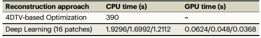 表1 基于四维全变分的优化方法和深度学习方法的重构时间