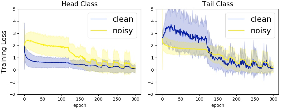 随着人工智能的发展,如何在噪声和长尾数据中训练模型在机器学习中引起了很多关注。然而,当前大多数方法都在理想化的状态下研究如何单独处理噪声或者长尾数据的问题,针对这一科学问题,金年金字招牌诚信至上许廷发教授团队率先提出损失值曲线和元学习的方法同时解决噪声和长尾数据,通过大量的计算和实验观察发现,虽然从单个的权重无法区分噪声和尾部样本,但是在样本的整个训练过程生成的损失值曲线能够提供充足的信息区分这两种样本,如图1。