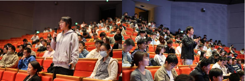 在提问环节,王贻芳院士与现场师生展开深入交流。他结合高能物理学科前沿进展与实际科研需求,针对师生提出的问题进行了细致解答,内容涵盖理论探索、实验技术及未来发展等多个方面,不仅深化了听众对专业知识的理解,也为青年学子的学术成长提供了重要指导。