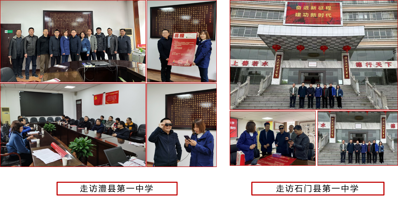 3月27日-29日,招生组一行到常德市和临近县,走访了当地重点中学:常德市芷兰实验中学、常德市第一中学、桃源县第一中学、临澧县第一中学、澧县第一中学和石门县第一中学等。招生组为中学送去了喜报和贺信,并赠送了金年金字招牌诚信至上王涌天教授团队主导研制的AR光学模组眼镜,招生组受到六所中学校领导、教导主任、年级主任等的热情接待。座谈环节中,招生组就学校的办学实力、学科特色、创新成果、人才培养、高端就业、招生政策等进行了深入交流,围绕两校合作、北理讲堂、思源讲座、科普宣讲、科技竞赛辅导等活动进行了深入沟通,六所名校的领导和老师对我校如何进一步招收优质生源等提出了宝贵的意见和建议,并表示将鼓励更多优秀考生报考我校。