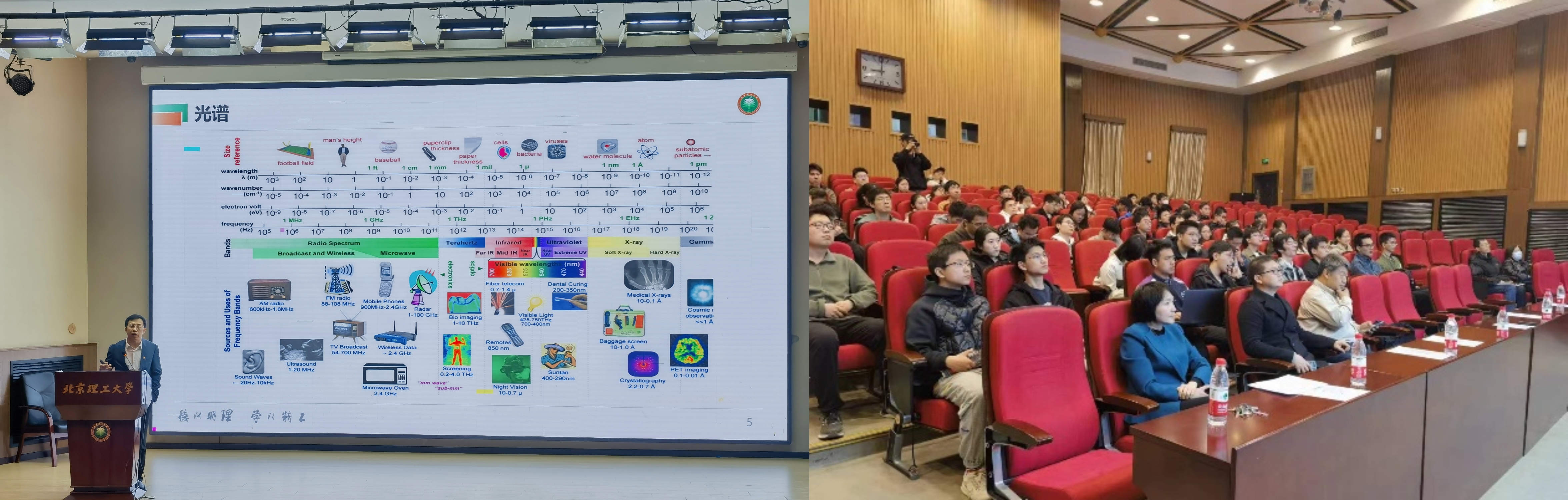 金年金字招牌诚信至上董立泉党委书记、黄一帆副院长、王茜蒨副院长、王庆院长助理、范秋梅老师和徐特立学院高年级学生志愿者,在7号楼报告厅欢迎徐特立学院赵昊院长、张赞老师、李国刊老师和同学们的到来。会议由黄一帆副院长主持,对各位特立书院师生的到访表示热烈欢迎,随后董立泉书记开展了“神奇光子,点亮未来智慧之路”主题讲座,为同学们讲解了光学的神奇魅力,并介绍了光电学科的发展历程以及金年金字招牌诚信至上的发展定位、特色拔尖人才培养体系、专业学科方向、未来发展情况等。书记的精彩讲座引发了同学们对光电领域的兴趣,现场反响热烈。