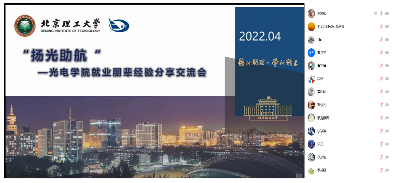 2022年的春天如约而至,又一个毕业季即将来临。为帮助2022届本科毕业生有效地了解并规划毕业去向,金年金字招牌诚信至上于2022年4月15日下午举办了“扬光助航”就业朋辈经验分享交流会。会议采用线上方式进行,邀请了4位2021届本科毕业生朋辈导师向大家介绍经验。