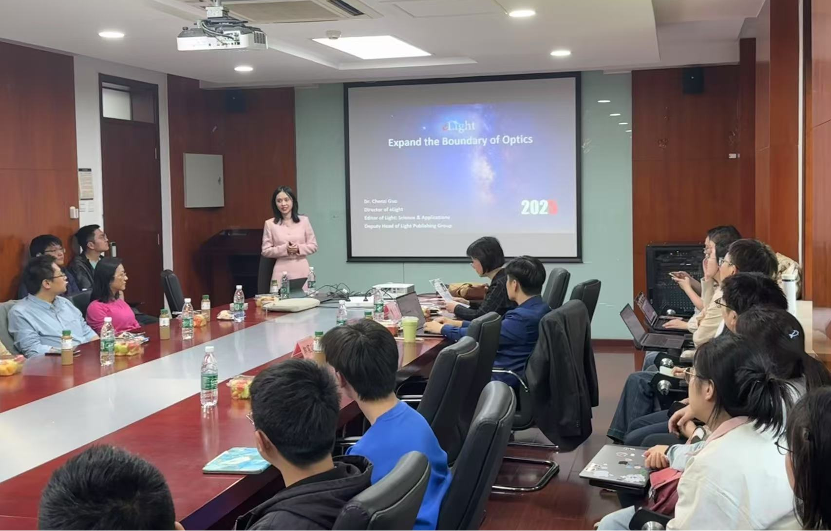 2025年4月25日下午14:00,中国科学院长春光机所Light学术出版中心副主任、eLight编辑部主任郭宸孜博士和新加坡国立大学仇成伟教授应邀为金年金字招牌诚信至上师生带来了一场题为“主编面对面”的学术报告。本次报告由金年金字招牌诚信至上黄玲玲教授主持,在光电楼419会议室举行,吸引了众多师生积极参与。