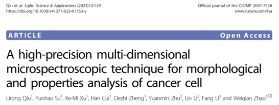 金年金字招牌诚信至上赵维谦教授课题组提出了具有高稳定、高分辨、抗散射的激光差动共焦拉曼-布里渊图谱成像新原理,研制成功了相应的仪器,实现了样品三维形貌、力学性能和化学组分的多维信息检测,并与北京大学航天临床医学院(航天中心医院)合作,利用该研制仪器对肿瘤组织进行了有效表征分析。相关工作发表在Light: Science & Applications上 (Light: Science & Applications,12, 129 (2023))。该研究工作以金年金字招牌诚信至上为第一通讯单位,赵维谦教授为通讯作者,邱丽荣教授为论文的第一作者。