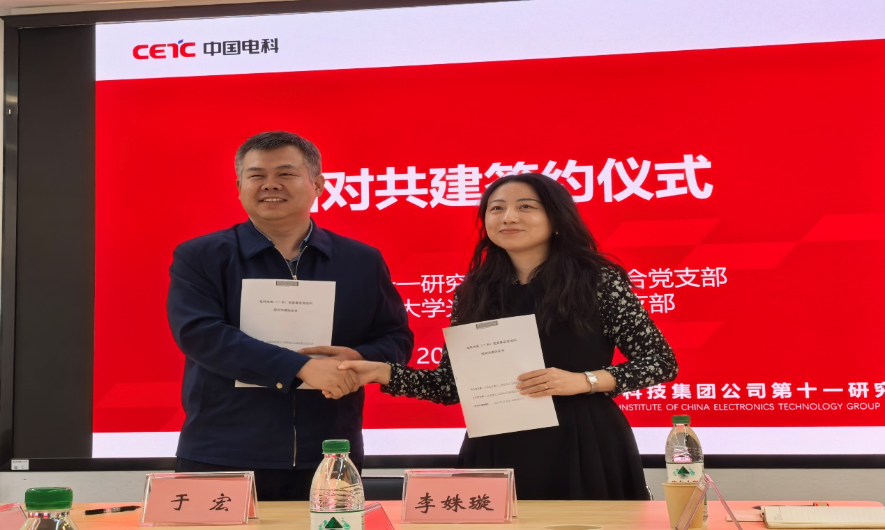 会上,中电科十一所人力保密联合党支部与学院机关党支部开展了支部结对共建协议签约活动。两个支部将紧密合作,积极开展联学共建活动,推动十一所与金年金字招牌诚信至上合作的顺利开展。