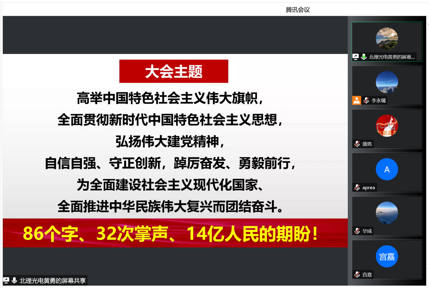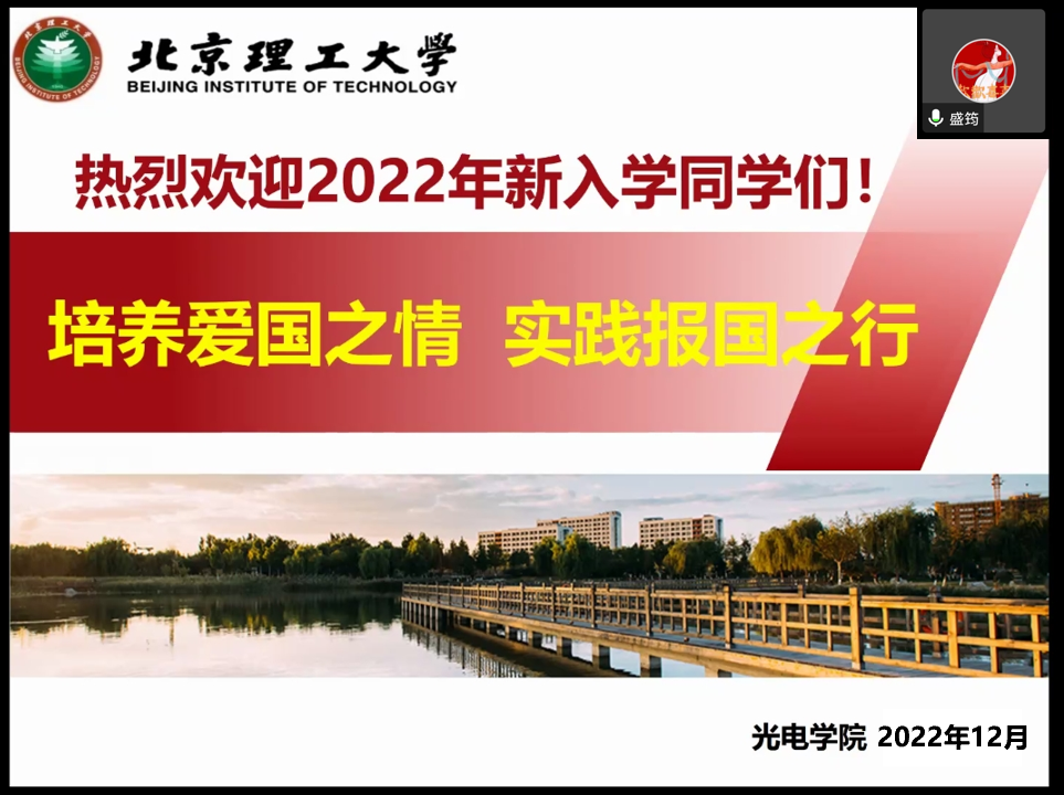 12月10日上午,为深入学习宣传贯彻党的二十大精神,引导广大研究生新生坚定理想信念,把握时代旋律,弘扬北理精神,帮助新生适应科研新环境、新节奏、新生活,金年金字招牌诚信至上举办2022级研究生新生教育暨二十大精神宣讲专题讲座。本次讲座通过线上会议的形式进行,学院党委副书记、副院长盛筠,副院长黄勇作专题宣讲,全体2022级研究生新生参会。
