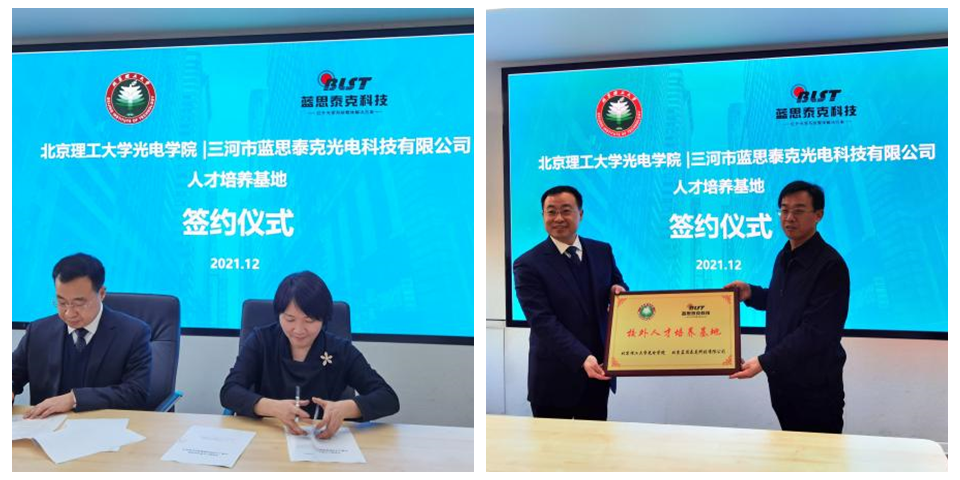 为进一步深化产学研融合,强化专业学生与企业的联系,我院于2021年12月30日与三河市蓝思泰克光电科技有限公司(以下简称“蓝思泰克”)开展了校外人才培养基地合作签约暨授牌仪式。我院董立泉书记、黄一帆副院长、盛筠副书记及仪器所相关教师和蓝思泰克张朝总经理、党宇星经理、杨天领经理、齐娜经理、刘佳副经理及人力资源部骨干出席了本次签约仪式。