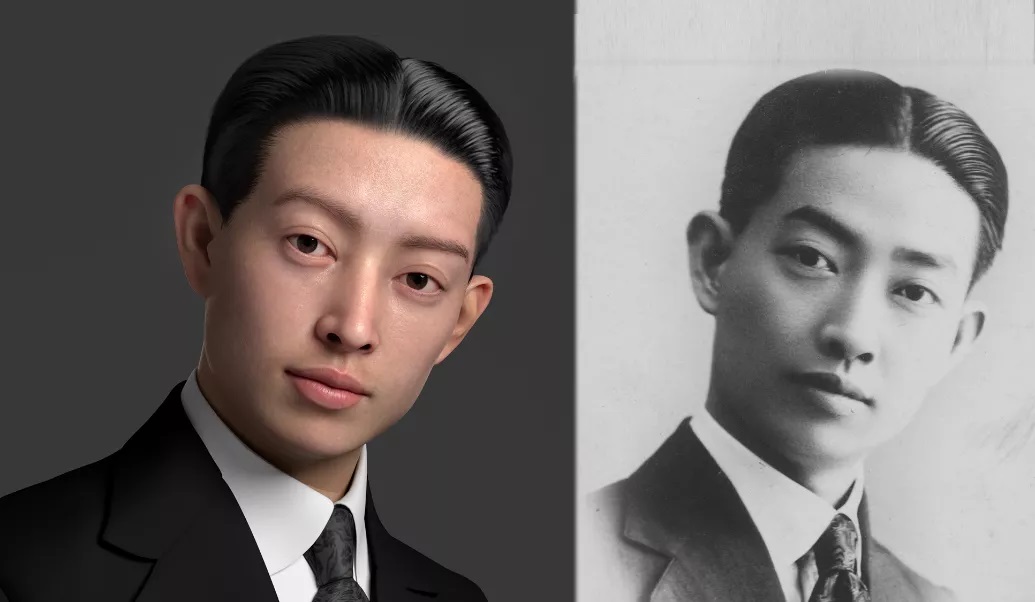 三是不断完善真人形象,通过不断打磨静态模型,再以真实立体裁剪为基础构建高逼真服饰,以民国留存布样为范本制作逼真服饰材质模拟,最终成功打造出梅兰芳孪生数字人。本次技术更新升级得到了南昌红谷滩VR基地的支持。