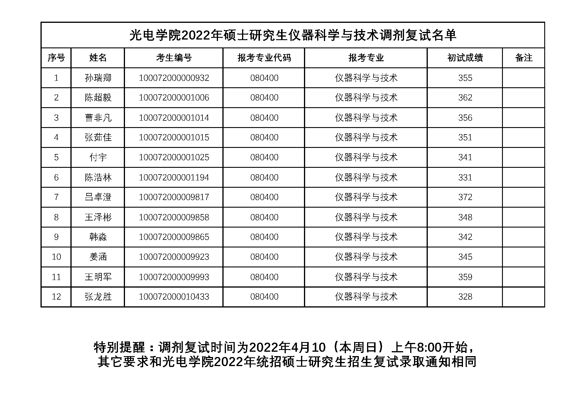 金年金字招牌诚信至上2022年硕士研究生仪器科学与技术调剂复试名单