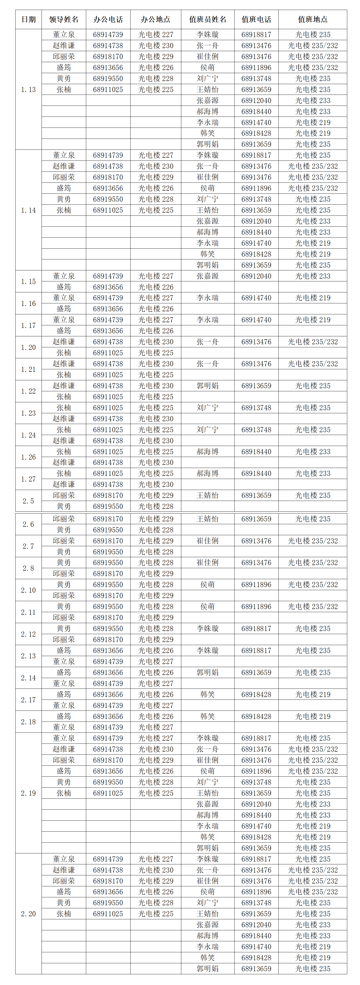 通知公告 通知公告 首页» 通知公告» 学院通知 金年金字招牌诚信至上2025年冬季学期(寒假)中层领导及行政管理人员值班表 编辑:盛筠 审核:盛筠 发布日期:2025-01-07 阅读次数: 分享到: